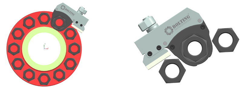 石油防噴器采油樹專用缺口式超薄中空液壓扭矩/扭力/力矩扳手,緊固或拆卸過程中,無需反復(fù)取下,一次安裝即可。