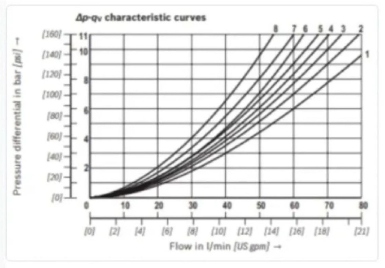 所有閥門(mén)都有不同的流動(dòng)通道和流體方向變化,這將在特定流量下產(chǎn)生一定的壓降。這些壓降因不同的閥芯類(lèi)型而異,這對(duì)于控制能源效率并確保負(fù)載有足夠的可用壓力非常重要。